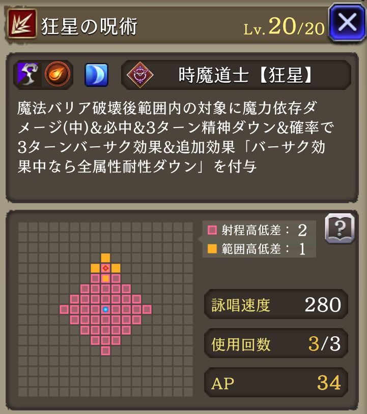 | 付加効果 | 魔力+20% 命中+15 狂星の呪術を強化 9マス範囲に変更 |