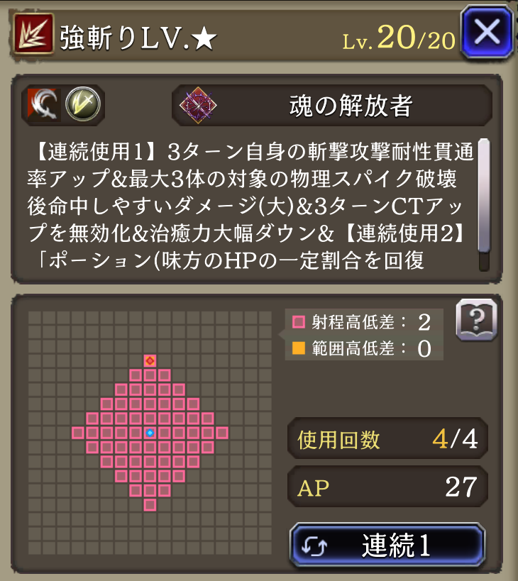 ![]()  | リリースエンド リレイズ解除 敵を戦闘不能にすると AP20回復  | 1439  | |