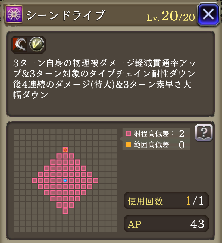 ![]()  | 4連撃 物理被ダメ軽減貫通+40% タイプチェイン耐性50ダウン 素早さ40%ダウン  | 2757  |