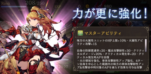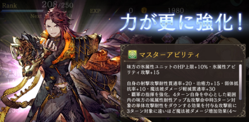 ![]() 味方の氷属性ユニットのHP上限+10%・氷属性アビリティ攻撃+15 自身の射撃攻撃耐性貫通率+20・治癒力+15 ⇩MA強化⇩ 味方の氷属性ユニットのHP上限+10%・氷属性アビリティ攻撃+15 自身の射撃攻撃耐性貫通率+20・治癒力+15・弱体抵抗+10・魔法被ダメ軽減貫通+30% | ||